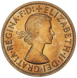 ELIZABETH II, Melbourne Mint proof penny, 1955. Full red, FDC.
