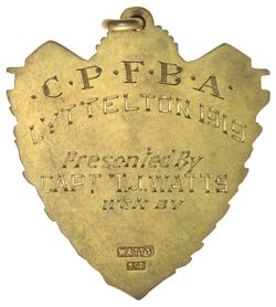 L.P.A.A.S.C. (Lyttelton Pirates' Amateur Athletic and Swimming Club), 1905, fob medal, handcrafted in greenstone with ...