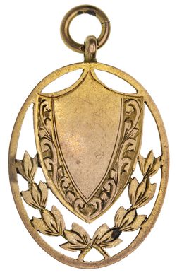 W.B.C., fob medal, hand engraved in gold (9ct, 4.9g, 37x33mm), no maker, ring top suspension, ...