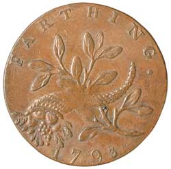MIDDLESEX, Denton's farthing, 1795 (D&H 1053 [illust.]); Pidcock's farthing, elephant/cockatoos (D&H 1067a [illust]); Spence's farthings ...