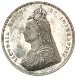 QUEEN VICTORIA, Jubilee, 1887, in silver (77mm) by J.E.Boehm and F.Leighton, obv. bust left, crowned ...