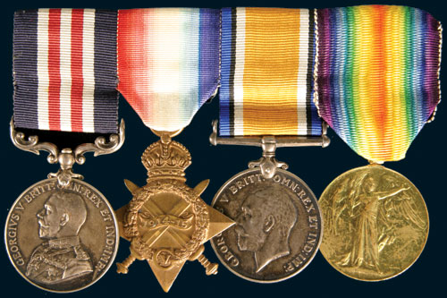 GROUP OF FOUR: Military Medal (GVR); 1914-15 Star; British War Medal 1914-18; Victory Medal 1914-19. ...