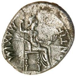 TIBERIUS, (A.D. 14-37), silver denarius, Rome mint, issued A.D. 14-37, (3.594 grams), obv. laureate head ...