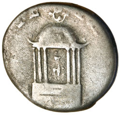 NERO, (A.D. 54-68), silver denarius, issued c.65, Rome mint, (3.106 grams), obv. laureate head to right of Nero, around NERO CAESAR AVGVSTVS, rev. temple of Vesta, VES[TA] above, (S.1946, RIC 62, BMC 104, RSC 335). Fine and scarce.