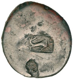 Ex Noble Numismatics Auction Sale 79 (lot 3608). Martini notes the letters which he believes to mean TI(tus?) CAE(sar) and AVG(ustus) which Martini notes are always closely associated and further notes the issues as struck generally on issues of Augustus from Ephesus. Martini places the countermark of dolphin and helmet as an earlier issue but still in the period of Vespasian and Titus. It was in a Thrace-Moesia area that these countermarks were applied to circulating worn coinage. The Pangerl collection contained very few examples with all these countermarks. Type 95 with dolphin are those mostly found with these additional countermarks.