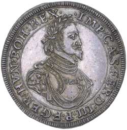 GERMANY, Western Bavaria, Augsburg, Title of Ferdinand III, silver half taler 1643, obv. bust laureate to right, rev. pinecone in centre with city view behind, (KM.79). Toned, extremely fine or better, scarce.