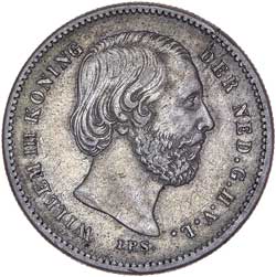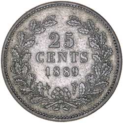 NETHERLANDS, twenty five cents, 1889. Nearly very fine.