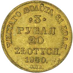 POLAND, under Russia, Nicholas I, twenty zlotych or three roubles, 1840 St. Petersburg mint (KM. ...