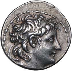 SYRIA, Kingdom of, Alexander II, (128-123 B.C.), silver tetradrachm, (16.582 grams), Antioch mint, issued 128-123 B.C., undated, obv. diademed head of Alexander II to right, fillet border, rev. Zeus seated to left on throne holding Nike and sceptre, on right **BASILEOS to left **ALEXANDROU*, to left monograms of **HDR*, under throne **D*, (cf.S.7115 [œ200], Newell SMA 339, SNG Israel I (Spaer) 2281). Off centred obverse, nearly extremely fine/good very fine and rare.