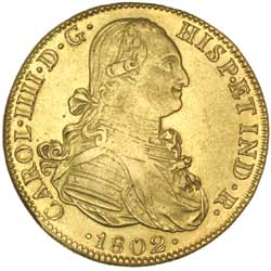 MEXICO, Charles IIII, gold eight escudos, 1802 Mexico City Mint (KM.159). Good very fine.