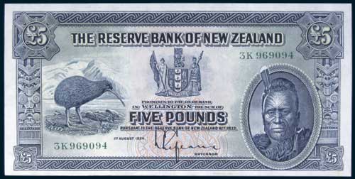 RESERVE BANK, L. Lefeaux, five pounds, 1st August 1934, number letter, 3K 969094 (Robb.R.142; L.606; P.156). Flat, otherwise extremely fine.