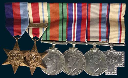 GROUP OF SIX: 1939-45 Star; Africa Star; Italy Star; Defence Medal 1939-45; War Medal 1939-45; ...