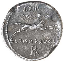 L. CALPURNIUS PISO FRUGI, (90 B.C.), silver denarius, Rome mint, (3.65 grams), obv. Apollo laureate ...