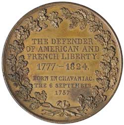 FRANCE, General Lafayette, Defender of American and French Liberty, 1777-1824, in bronze (46.5mm) by Francois Caunois. Extremely fine.
