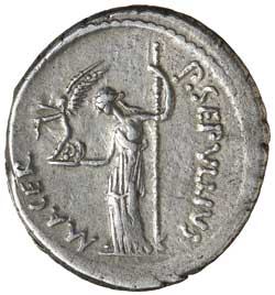 This coin represents an opportunity to acquire a fine and detailed portrait of Julius Caesar issued in the year of his assassination. The year 44 B.C. marked a turning point in the history of the Roman coinage. Caesar as dictator ordered his effigy to be placed on the silver denarii struck by the four moneyers including Sepullius Macer. This was the first occurance of contemporary portraiture on the Roman coinage, and it marked a major step towards the popular acceptance of the monarchical concept in the Roman State. Although the issue was cut short by Caesar's assassination on the Ides of March, other coins were struck bearing his portrait by the Caesarians. It soon became the practice for the appearance of more portraits of the triumvirs and other contenders for power and, soon, the emperors. This type with Venus on the reverse refers to the claim of the Julia gens to be descended from the goddess of love.