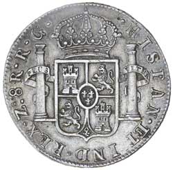 MEXICO, Ferdinand VII, silver eight reales, Zacatecas Mint, 1821 R.G. (KM.111.5). Very fine.