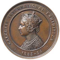INDIA, Calcutta International Exhibition, 1883-84, award medal in bronze (51mm) uninscribed. Reverse with edge bruise ...