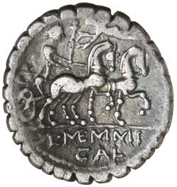 L. MEMMIUS GALERIA, (c.106 B.C.), silver denarius, Rome mint, (3.72 g), obv. Saturn laureate head ...