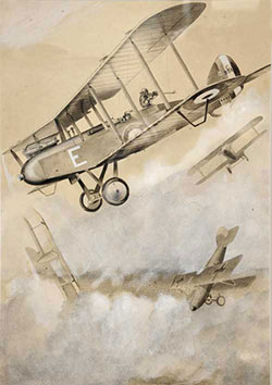 WATERCOLOUR, 'Dog Fight', monochrome (51x36cm), unsigned, in the style of Angus Cree, framed and glazed ...