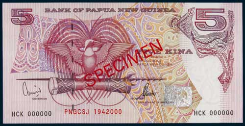 PAPUA NEW GUINEA, Bank of Papua New Guinea, specimen five kina, undated (1992-), HBR 000000, ...