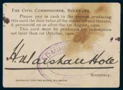SOUTH AFRICA, Boer War, Bulawayo, Marshall Hole, 1900 issue, 1st August 1900, two shillings and ...
