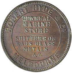 HYDE, Robert & Co., Melbourne penny, 1857 (A.280). Slight verdigris, otherwise extremely fine.