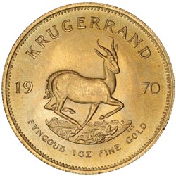 SOUTH AFRICA, Republic, krugerrand, 1970 (KM.73). In South Africa Mint plush case, uncirculated.