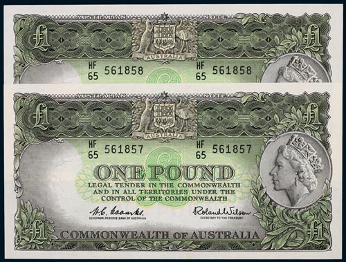 ONE POUND, Coombs/Wilson (1961) HF/65 561857/8 (R.34aF) consecutive pair of first prefix notes. Both notes ...