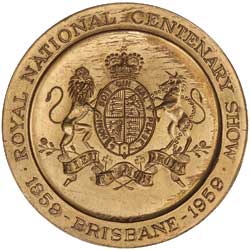 ROYAL NATIONAL CENTENARY SHOW, Brisbane 1859-1959, in bronze (52mm), by Myers & Co, (C.1959/6) (this ...