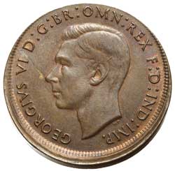 GEORGE VI - ELIZABETH II, florin, 1957, clipped edge at 7 o'clock; shilling, 1961, clipped edge at 6 o'clock; sixpence, 1958, struck five percent off centre with raised lip; pennies, 1941 struck six percent off centre; 1943Y. struck six percent off centre with raised lip (some mint red); 1944Y. with clipped edges at 1-2 o'clock and about 5 o'clock; 1944Y. struck about three percent off centre; halfpenny, 1964Y. struck about eight percent off centre with raised lip (most mint red). Good - nearly uncirculated. (8)