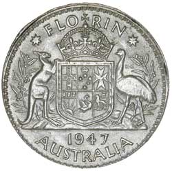 GEORGE VI, florin, 1947, struck slightly off centre, partly milled edge only. Nearly uncirculated/uncirculated.