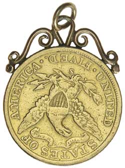 USA, HALF EAGLE CORONET HEAD GOLD FIVE DOLLARS, 1906S with scroll mount fitted at top ...