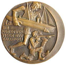 GERMANY, World War I, The Sleepwalkers on the Gallipoli Peninsula (Mondsuchtige auf Gallipoli) cast bronze medal (156mm) by Karl Goetz. Extremely fine.