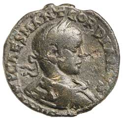 PHOENICIA, Berytus, Claudius, (A.D.41-54), AE 24, (15.56 g), obv. bare head to left, most of legend around, around TI CLAVD CAESAR AVG GERM IMP, rev. colonist ploughing to right, with yoke of oxen, COL I[VL AVG], (cf.S.477, SNG Cop. 93, BMC 72); Berytus, Gordian III, (A.D. 238-244), AE 29, (19.10 g), obv. laureate, draped, and cuirassed bust to right, rev. facing bust of Astarte between two aquilae, all within tetrastyle temple with sculpture along roofline, (S.-, Sawaya Series 117, BMC 231, SNG Cop.123), (illustrated). Nearly very fine. (2)