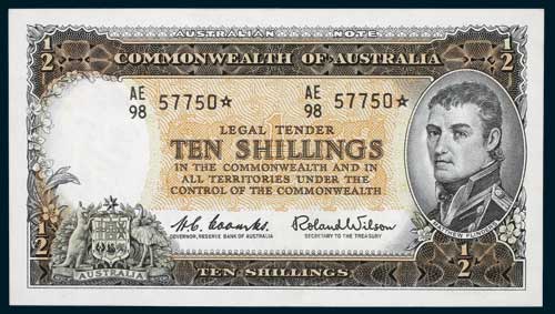TEN SHILLINGS, Coombs/Wilson (1954) AC/96 84554* (R.16s). Good extremely fine and very rare thus.