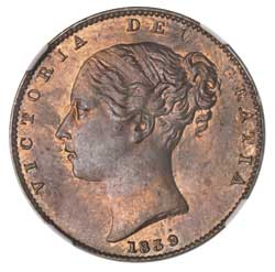 QUEEN VICTORIA, young head, farthing, 1839 (S.3950); bun head, farthing, 1883 (S.3958); old head, farthings, ...