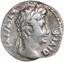 AUGUSTUS, (27 B.C. - A.D. 14), silver denarius, Lugdunum mint, struck 8 B.C., (3.63 g), ...