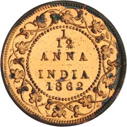 INDIA, British, Queen Victoria, proof restrike one twelfth anna, 1862 (KM.465). Nearly FDC.