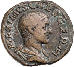 MAXIMUS, (A.D. 235-238), sestertius, Rome Mint, (20.27 g), obv. draped bust right, around MAXIMVS CAES ...
