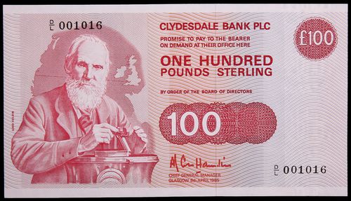 SCOTLAND, Clydesdale Bank PLC, one hundred pounds, Glasgow, 9th November 1991, D/T 000751, (P.217b). Uncirculated. ...