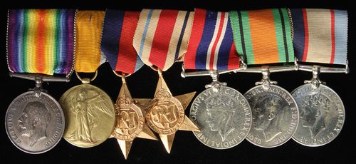 GROUP OF SEVEN TO WIA: British War Medal 1914-18; Victory Medal 1914-19; 1939-45 Star; Africa Star; Defence Medal 1939-45; War Medal 1939-45; Australia Service Medal 1939-45. 2267 Pte H.J.Wilkinson 46 Bn AIF on first and second medals, VX45489 H.J.Wilkinson on third to seventh medals. All medals impressed. Very fine.