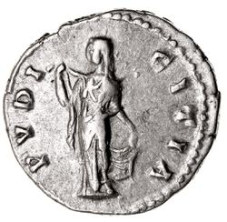 FAUSTINA JUNIOR, wife of Marcus Aurelius, (d.A.D. 175), silver denarius, issued 149, (3.45 g), obv. around FAVSTINAE AVG PII AVG FIL, draped bust to right of Faustina, rev. PVDICITIA, Pudicitia standing to left drawing out veil and gathering up fold of skirt behind, (S.4706, RSC 176a, RIC 507a, BMC 1051). Good very fine.