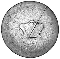 NEW SOUTH WALES, fifteen pence or dump, 1813 (Mira dies A/1). Worn smooth, only the crown visible and the milled edge, toned with obverse scratch otherwise fair/ poor.