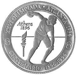 PERU, proof twenty nuevos soles 1996, crown size issue struck in gold (22 crt), commemorating 1996 games, rev. Athens 1896, milled edge, (40.3 grams), (KM.-). Brilliant FDC.