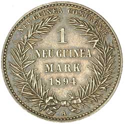 GERMAN NEW GUINEA, one mark, 1894A. Attractive tone, nearly extremely fine and scarce in this condition.