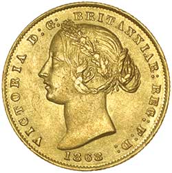 QUEEN VICTORIA, second type, 1868. Peripheral die breaks on the reverse, minor marks on cheek otherwise good extremely fine.