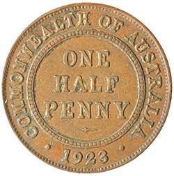 GEORGE V, 1923. Die breaks on obverse and reverse, good fine.