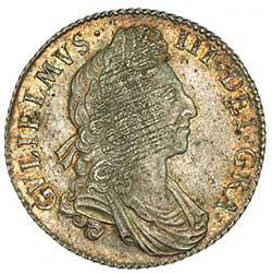 WILLIAM III, third bust variety, silver shilling, 1697, (S.3511, ESC 1108). Lightly toned, very fine. ...