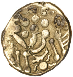 KENT, uninscribed issue, Kentish Geometric type (c.60 B.C.), gold quarter stater, (1.29 grams), obv. plain, ...