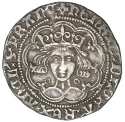 RICHARD II, (1377-1399), silver halfpenny, Type III, London mint, fishtail letters, (S.1700). Dark tone, chipped, ...